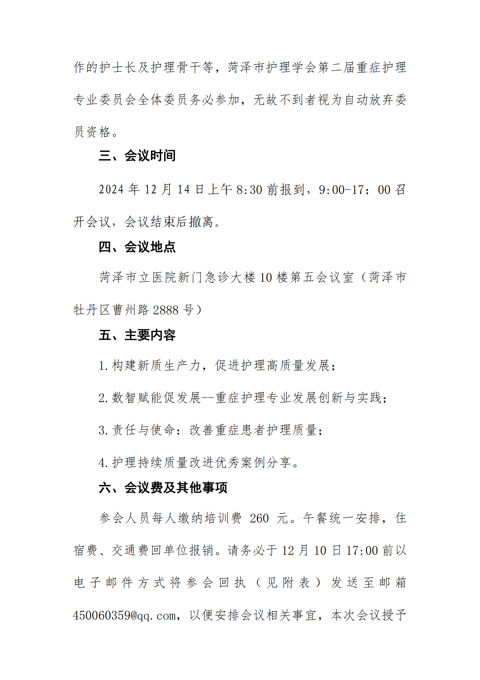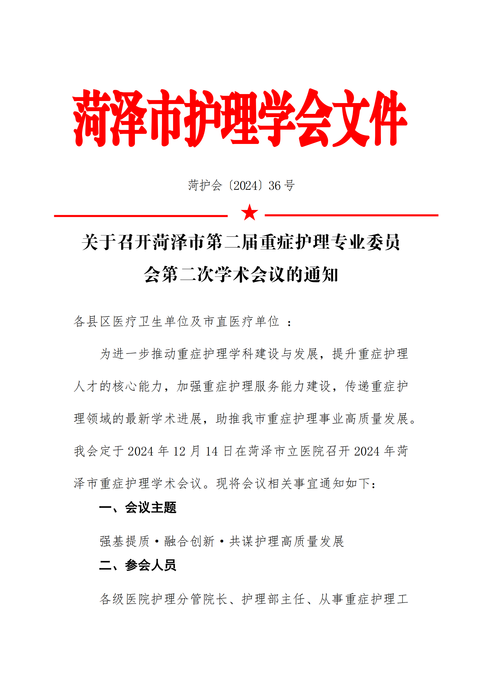 关于召开菏泽市第二届重症护理专业委员会第二次学术会议的通知